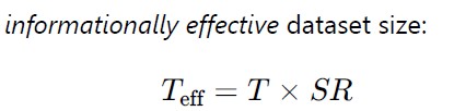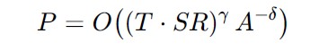 We’ll skip a few steps and claim that the number of parameters is proportional (“Oh”-notation) to the size of the corpus T, signal to noise ration SR, and desired accuracy A. Exponents depend on the specific situation: